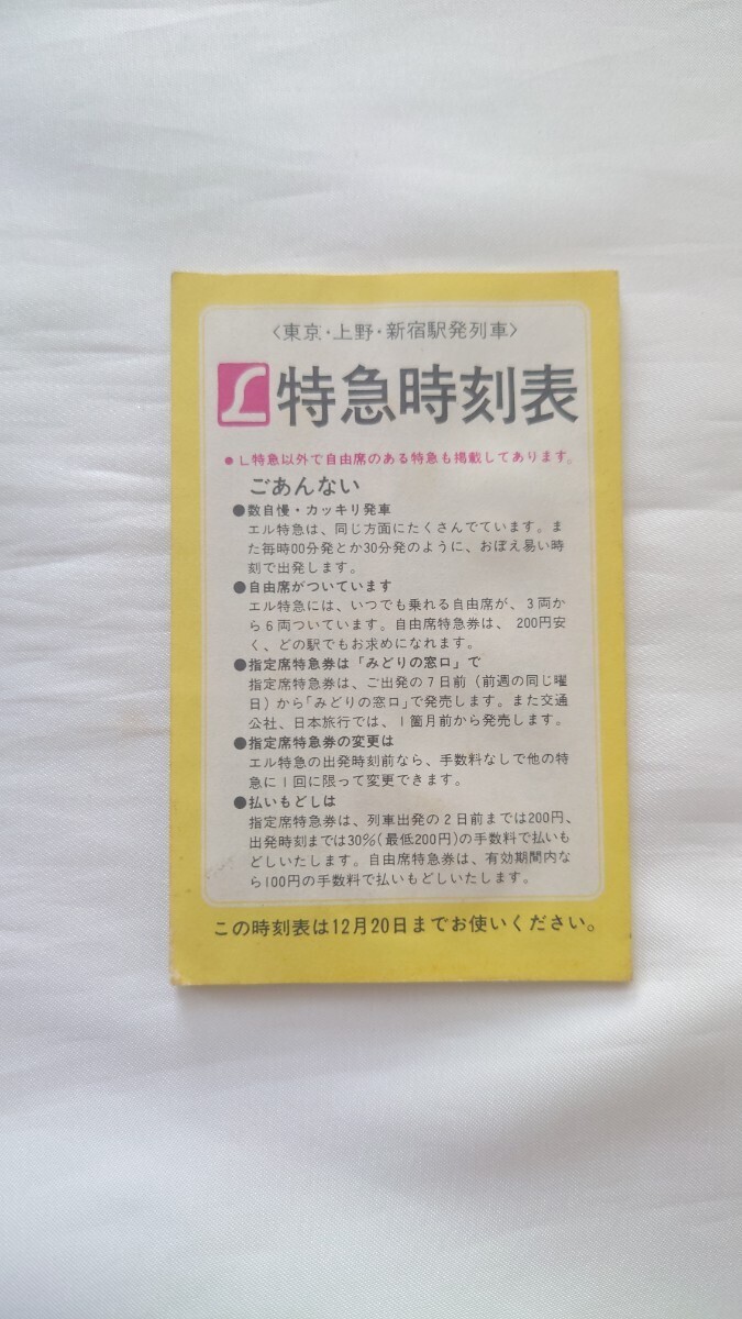 - ★国鉄★東京・上野・新宿駅発列車 特急時刻表★昭和53.10.2 黄色