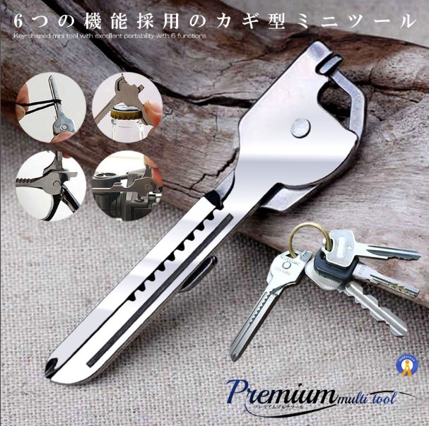 - マルチツール 鍵型ツール 6in1 超小型 高機能 ステンレス製 多機能 キーホルダー