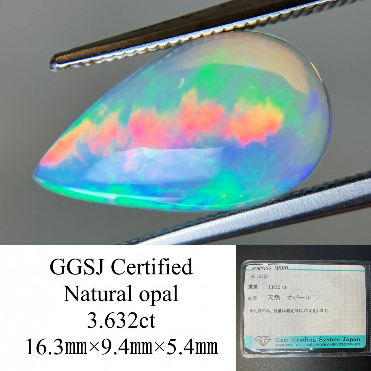 > オパール 3.632ct 宝石ソーティング付き 16.3×9.4×5.4 天然 ルース( 裸石 ) 4535YY