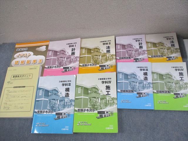 - 日建学院 2級建築士学科 学科I~IV 受験テキスト/問題解説集/重要条文ポイント 等 2024年合格目標 計10冊 ★ 178L4D