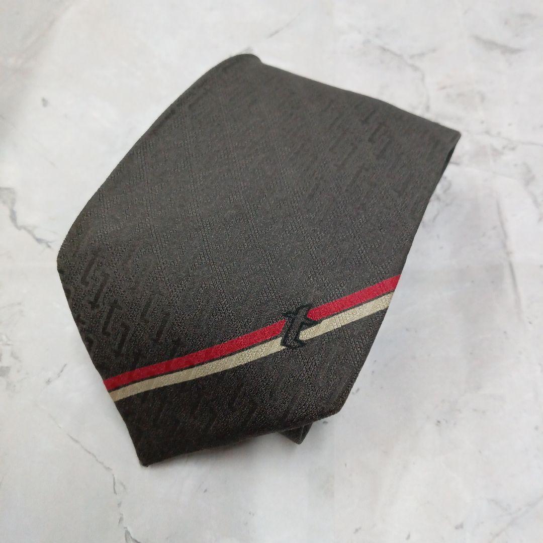 - ア・テストーニ ネクタイ 灰色 幾何学模様 絹 大剣先ストライプ【n1145】