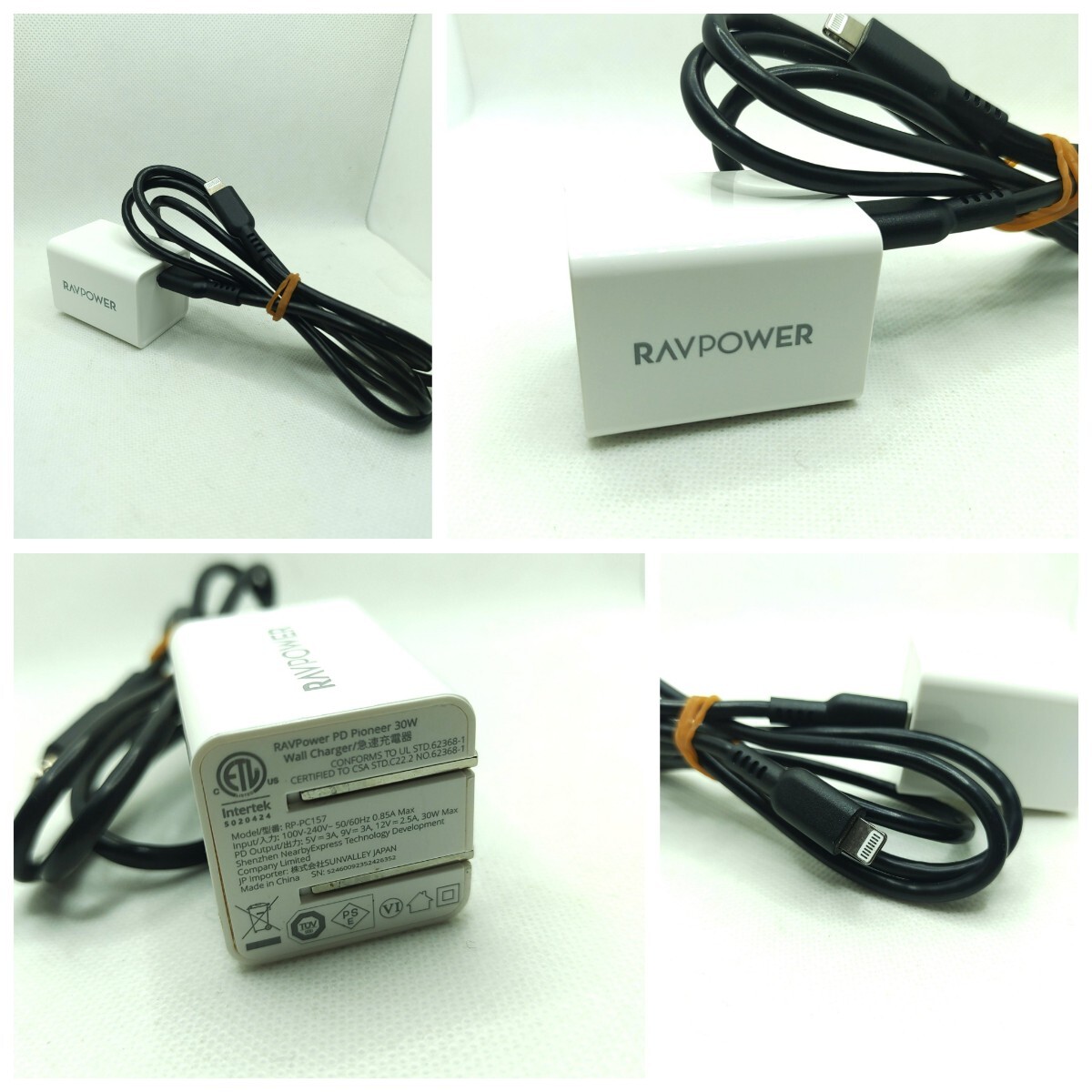 > スマホ 急速充電器 RAVPower PD30W RP-PC157 プラグ折りたたみ式 1ポート ソフトバンク Lightningケーブル付き HYP-36000 【動作確認品】