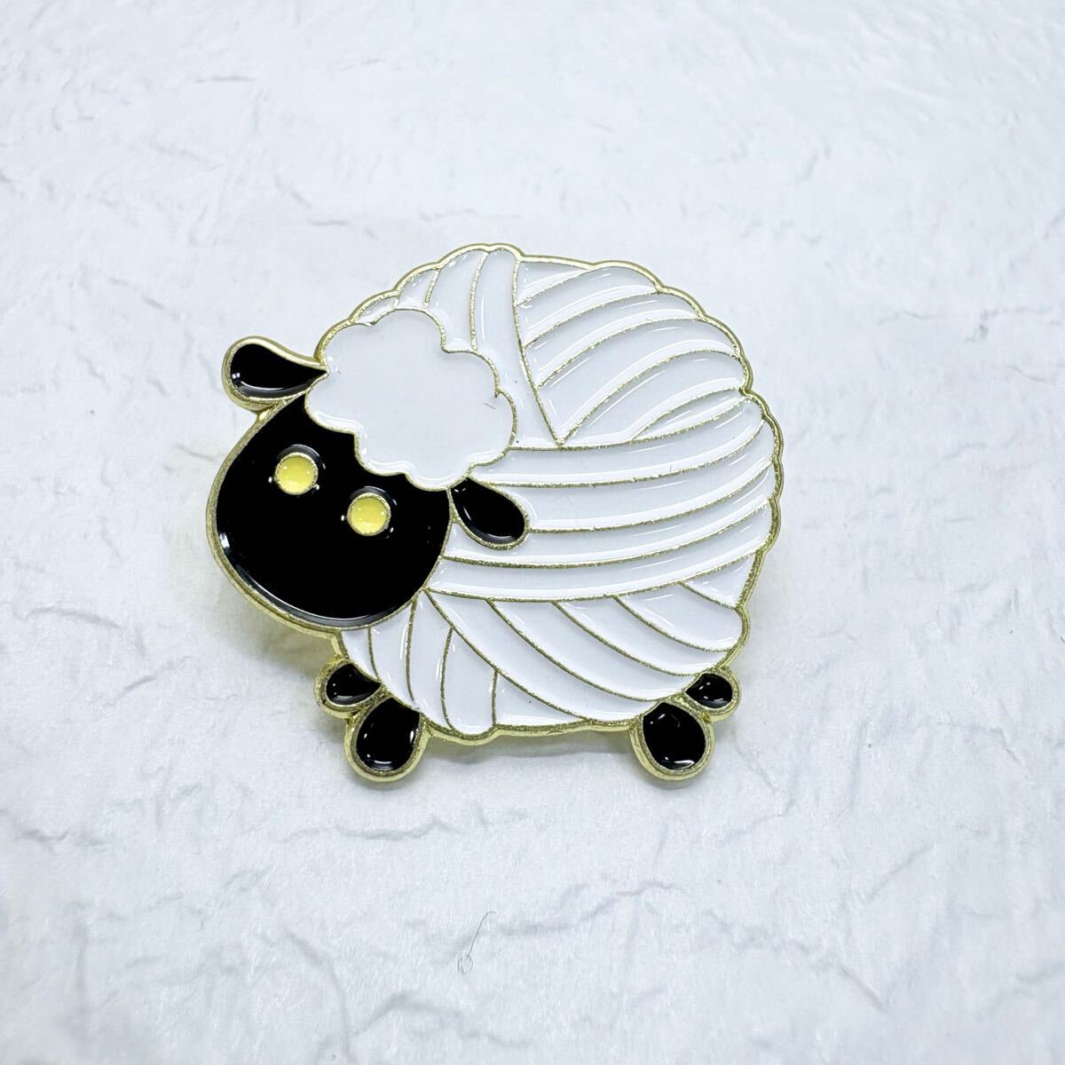 - 【ピンバッジ】羊 ひつじ 毛糸玉 白 動物 かわいい