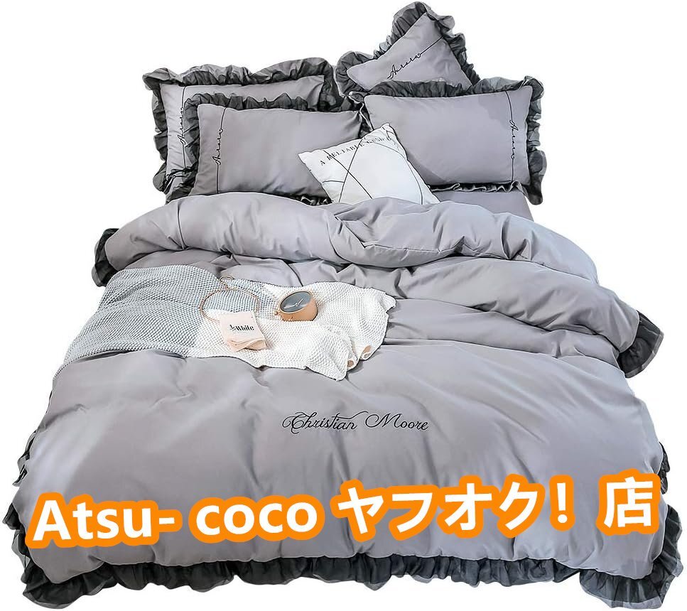 - 布団カバー刺繍 蓮の葉 和式 寝具カバーセット掛け布団カバー敷布団カバー枕カバー布団用洗い(ライトグレーシングル・3点セット・敷布団用)
