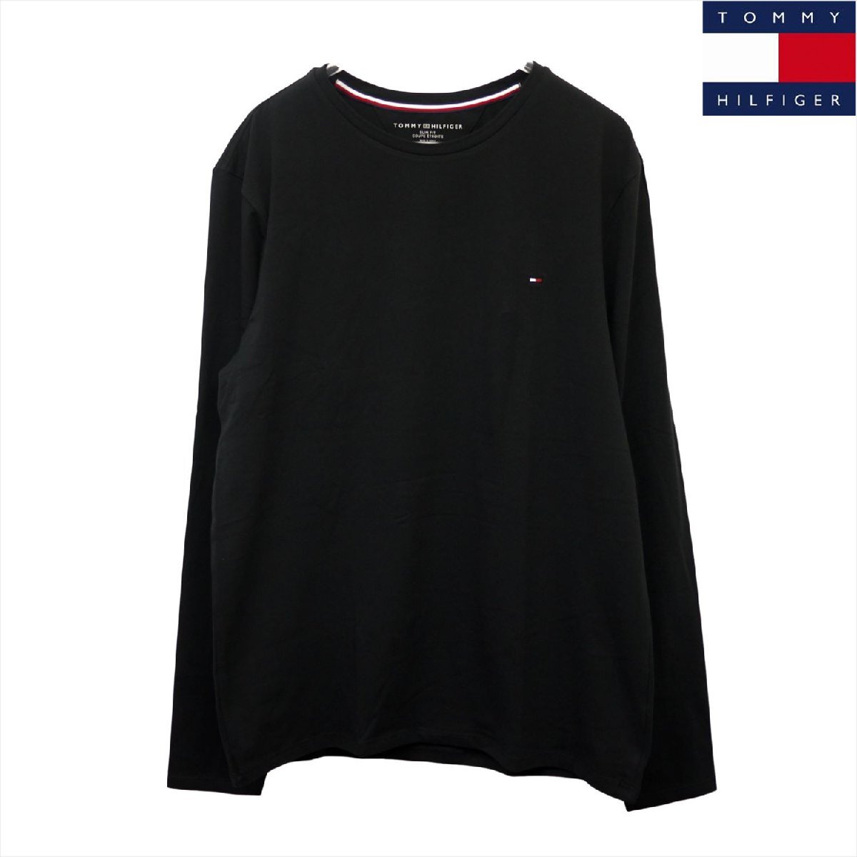 - 新品 トミーヒルフィガー 刺繍ロゴ ストレッチ 長袖Tシャツ (L) ブラック 黒 ロンT カットソー TOMMY HILFIGER USAモデル /aa64