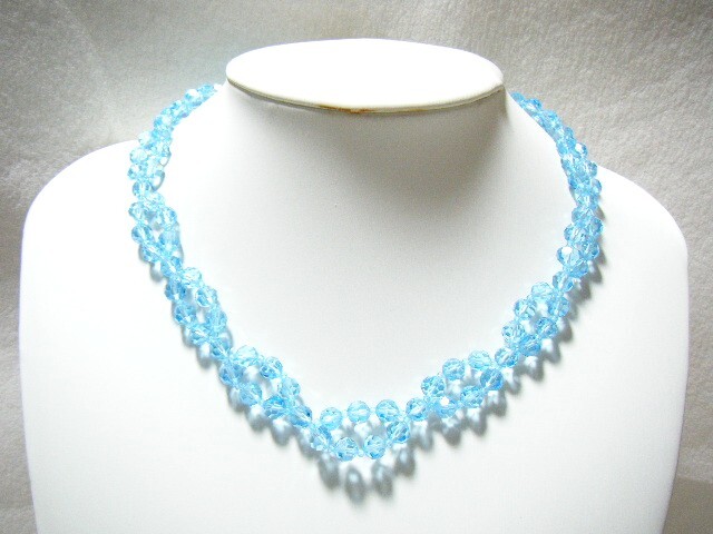- ★ビーズ ネックレス 水色 多面カット 【EP4】
