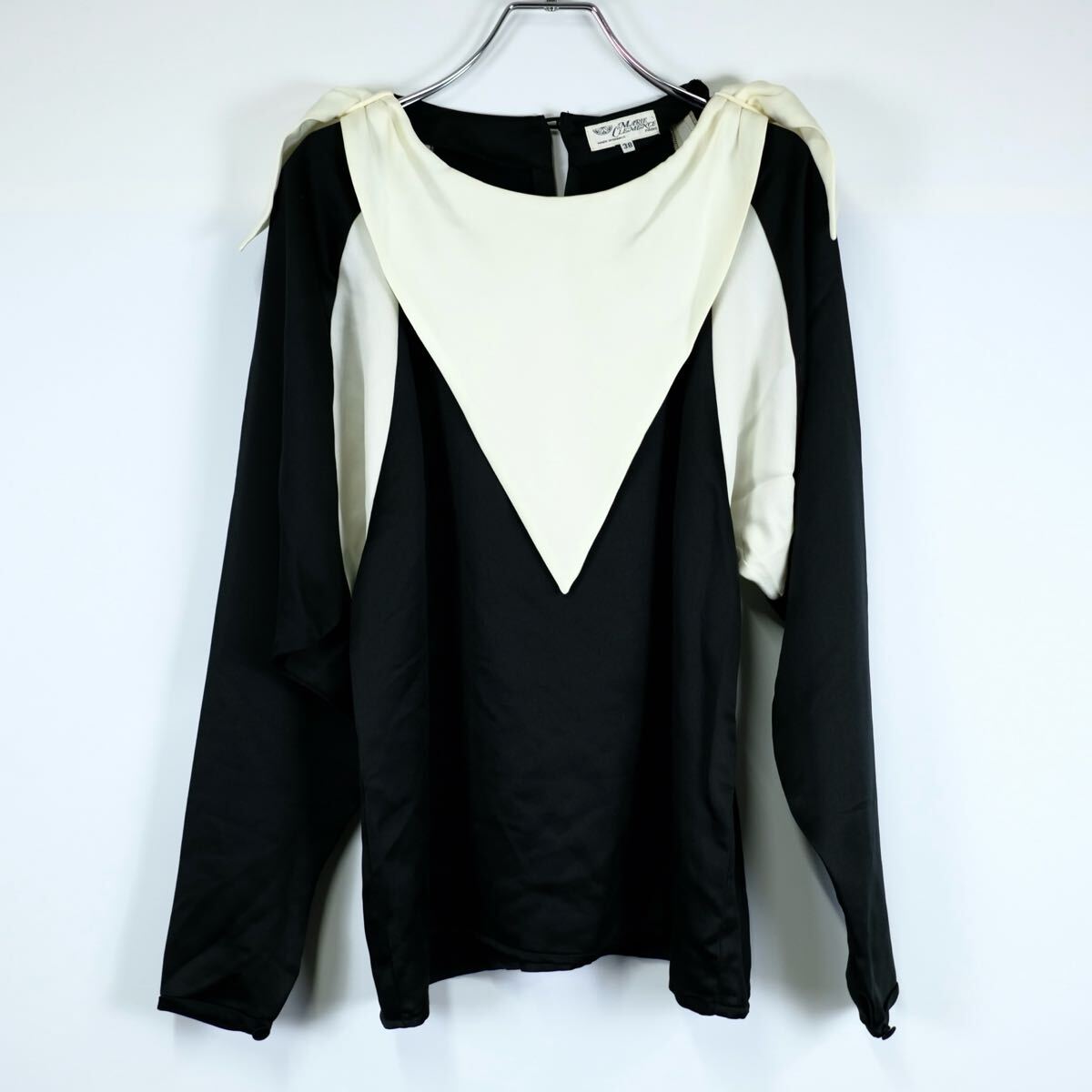 - 1970s フランス製 デザイン サテンシャツ スカーフ付き ユーロ ビンテージ 古着屋 シルク アート 60s