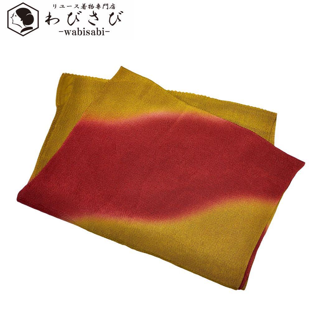 - 和装小物 帯揚げ 正絹 染め分け 縮緬 曲線模様 黄土色 C-5684 着物 きもの kimono 和服 和装 中古 リサイクル着物 【送料無料】