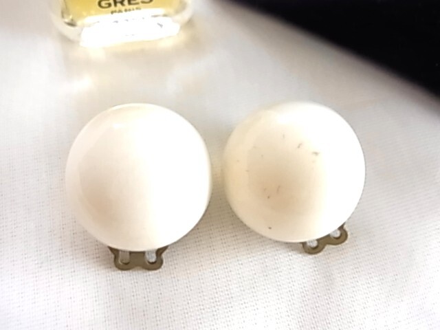- ♪ビンテージ/ヴィンテージ 円形ラウンド ドーム形 ホワイトトーン ミルク色 白色 昭和レトロ 和モダン調のイヤリング
