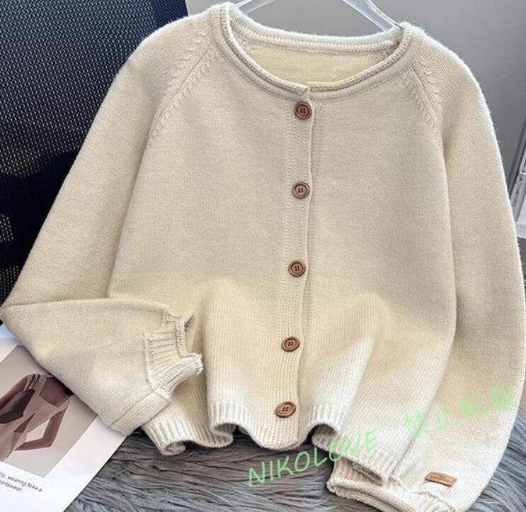 > 新品 ニット セーター カーディガン シンプル 暖かい ゆったり トップス チュニック 大人可愛 フリーサイズ ナチュラル 白色 3色