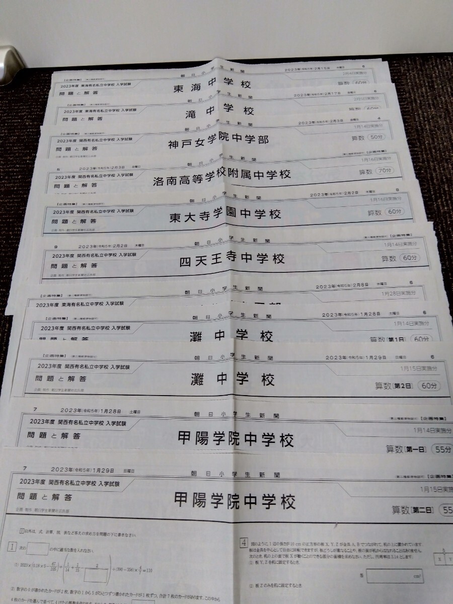 - 東海、関西有名私立中学校 入学試験 2023年度 朝日小学生新聞 灘/東海/甲陽/南山/四天王寺/東大寺学園/洛南高等学校付属/神戸女学院/滝