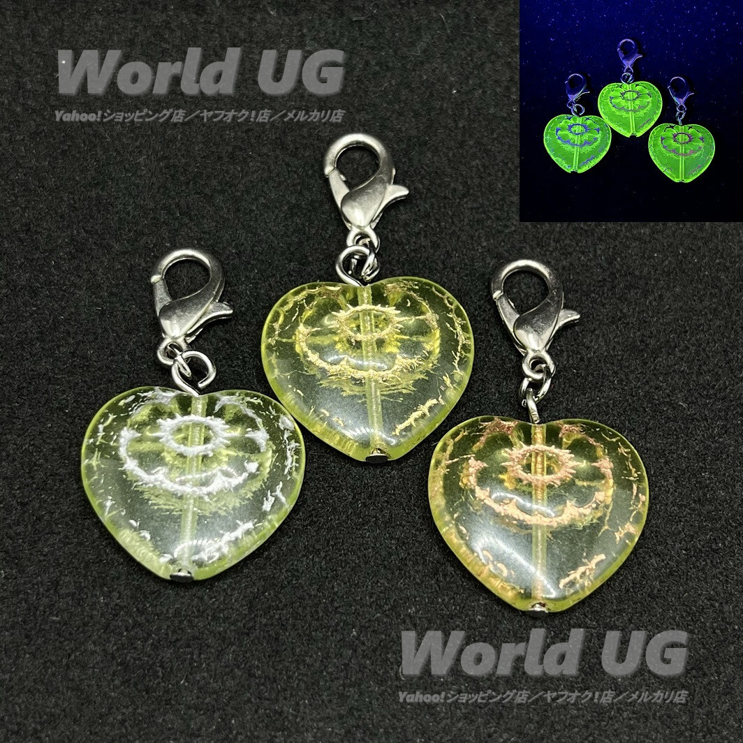 - ウランガラス ヴィクトリアンハートビーズチャーム 模様3色 17mm×17mm