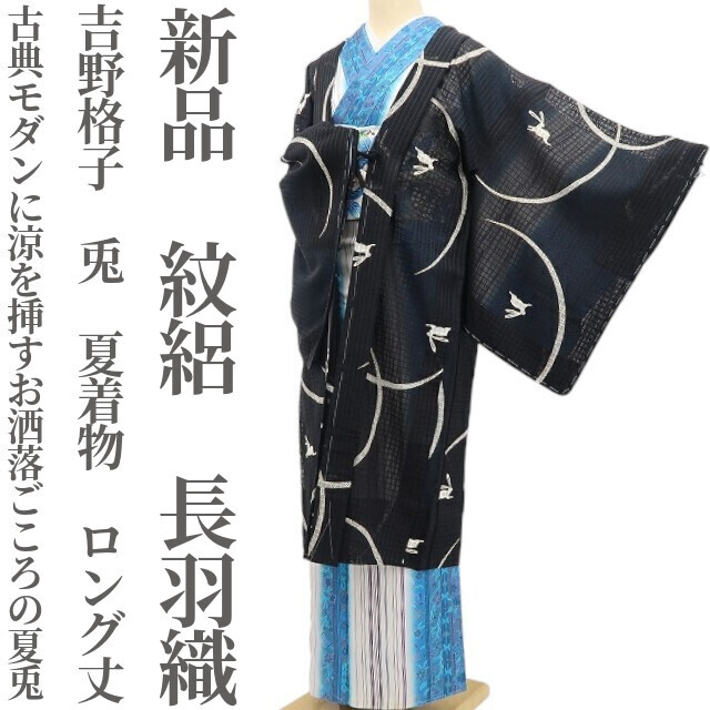 - tomihisa 新品 紋絽 吉野格子 兎 夏着物 正絹“古典モダンに涼を挿すお洒落ごころの夏うさぎ”仕付け糸付 紐付 ロング丈 長羽織 5594