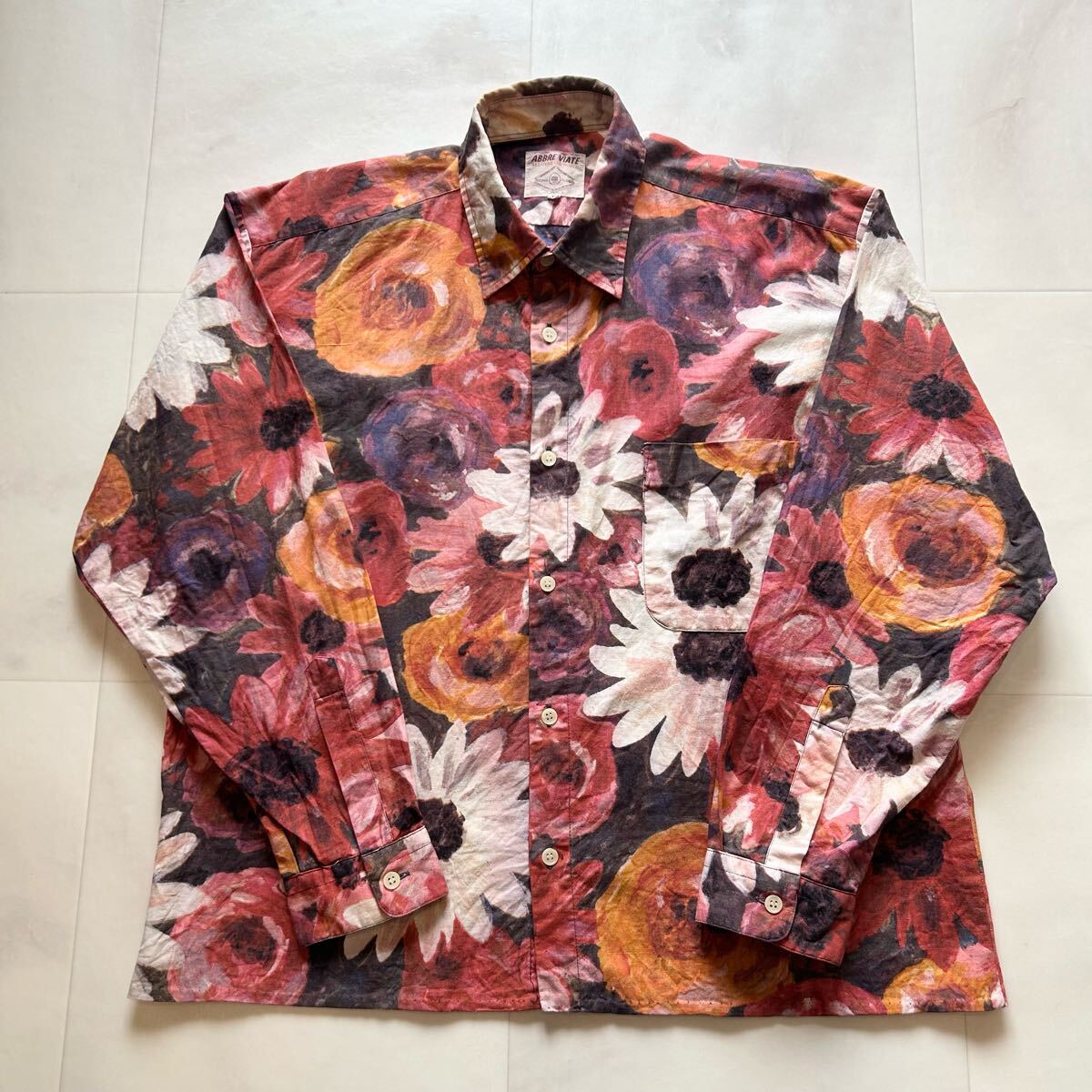 - ABBRE VIATE 総柄 柄シャツ 花柄 レトロ アート 絵画 ビンテージ 長袖シャツ