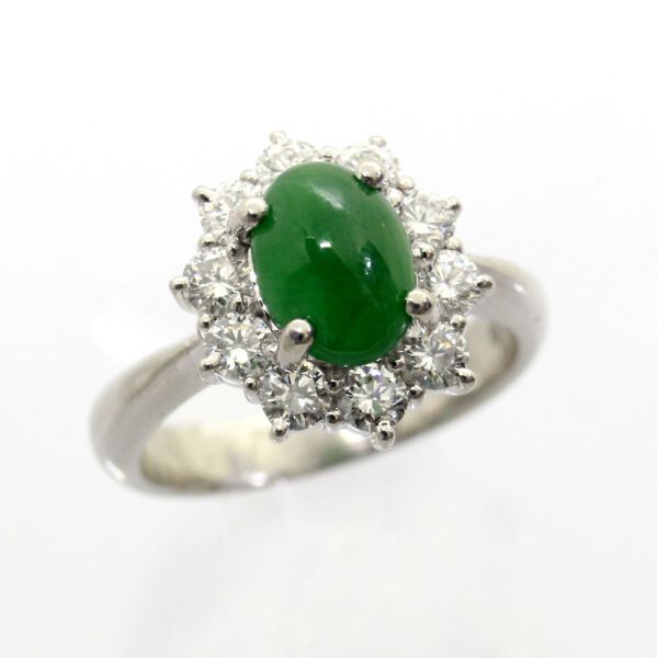 - ◎中古美品◎プラチナ ヒスイ 1.49ct ダイヤ 0.72ct リング 10.5号