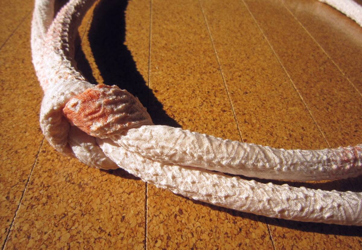 - ◇◆『紅』・手細工アンティーク 正絹・綸子鹿の子絞り 丸ぐけ帯締め K-1