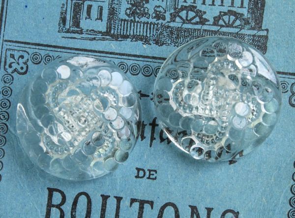 表面に粒状の模様が施されたガラスボタン2個の出品です。