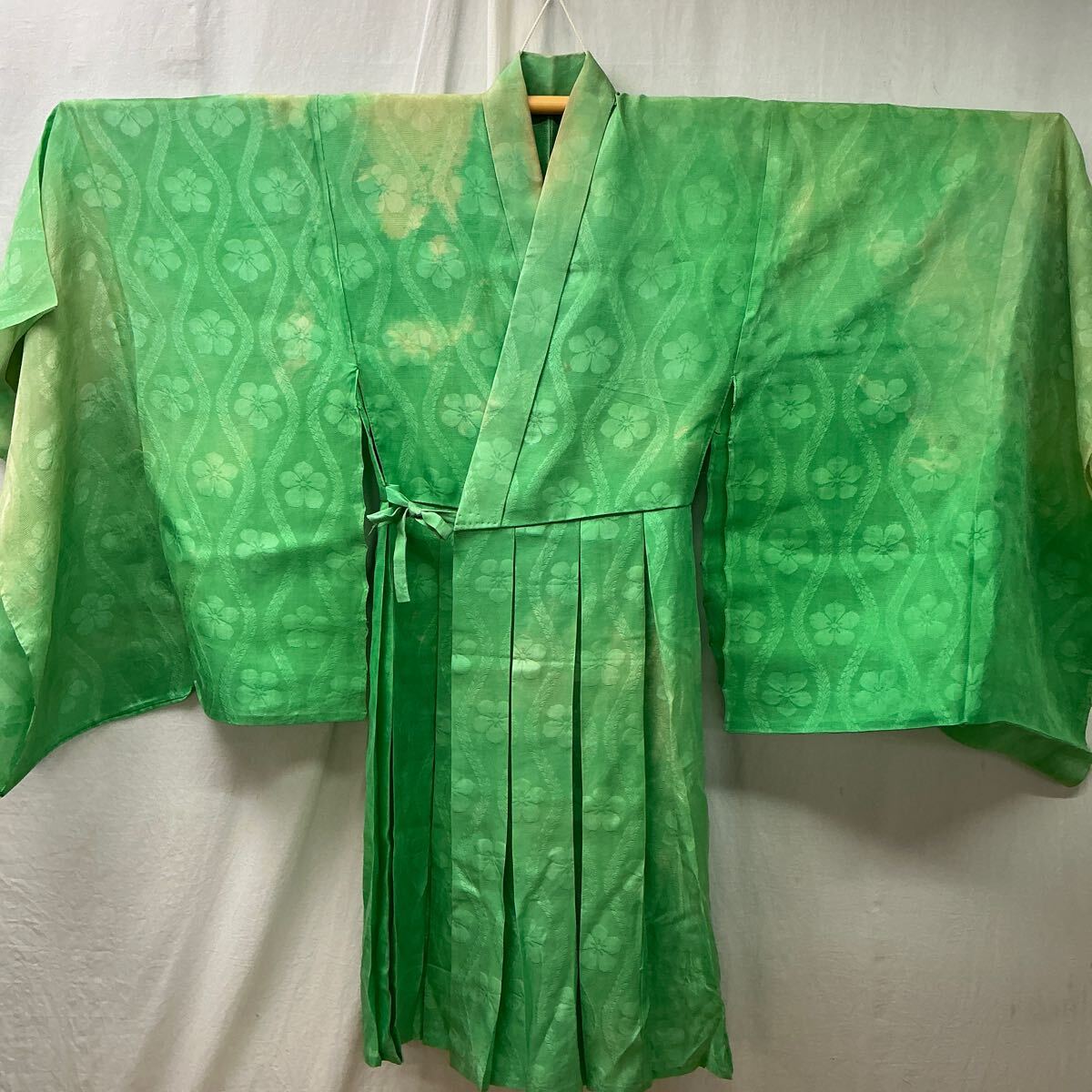 - 【B18】送無 真言宗 法衣 夏用 紗地 絽 緑色 桔梗紋 絹 上衣 衣装 密教 行者 お坊さん 僧侶