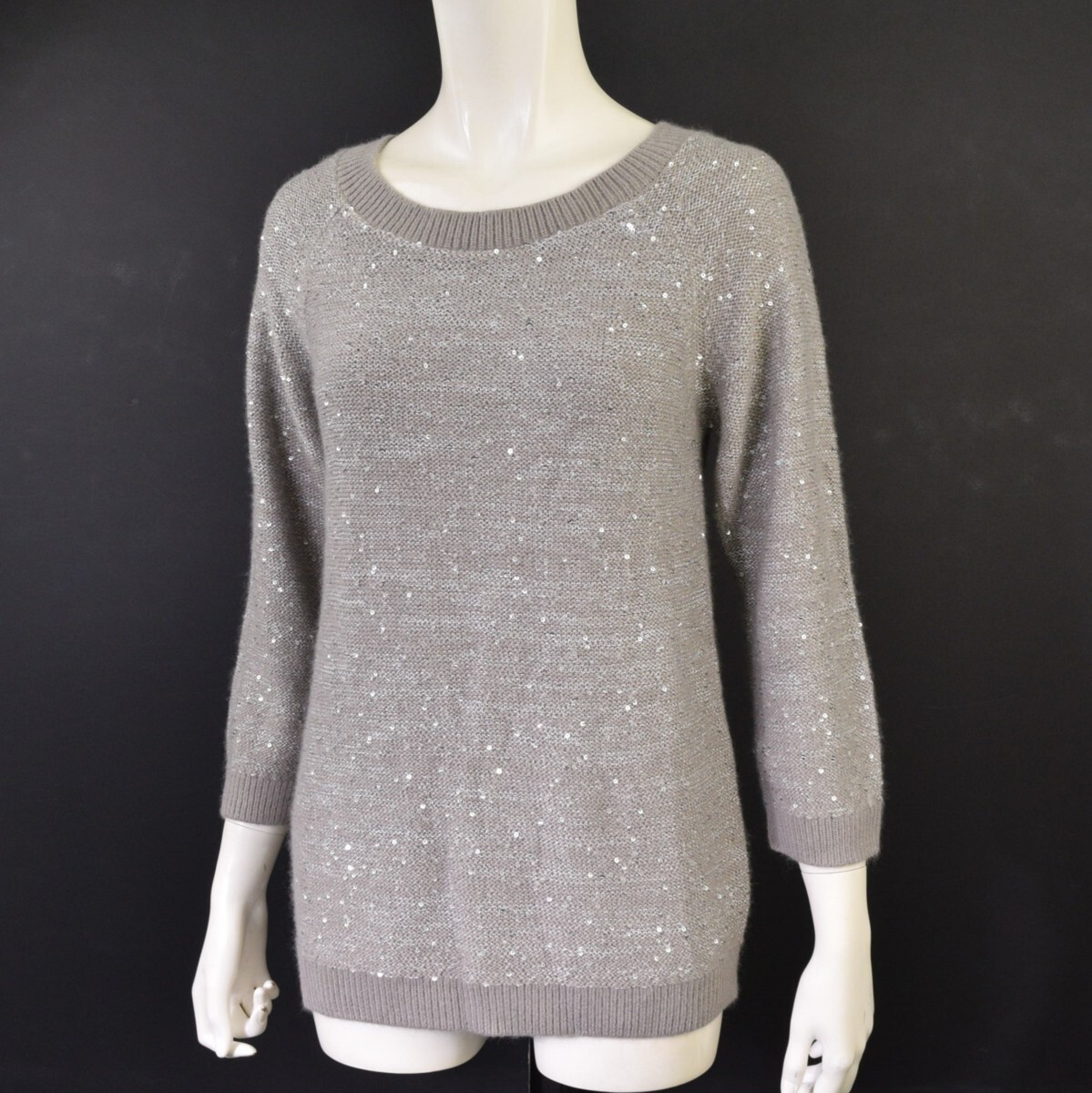> 5000-KA00008★ローラアシュレイ 美品★こなれグレー.:* スパンコール煌めく裏地付きニット XS LAURA ASHLEY