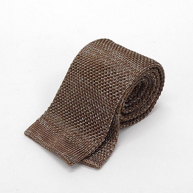 - ニットタイ ネクタイ 剣先6cm シルク100% 茶系 霜降り ntt103