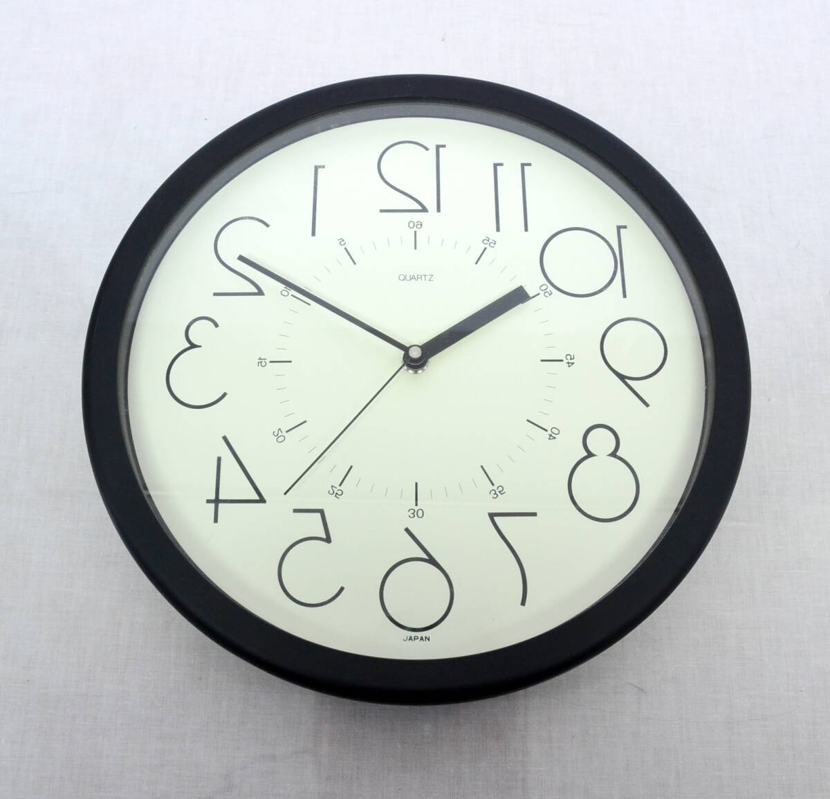 - 逆転時計 逆さ時計 ミラー時計 壁掛け時計 ウォールクロック 洗面所等に最適 中古品