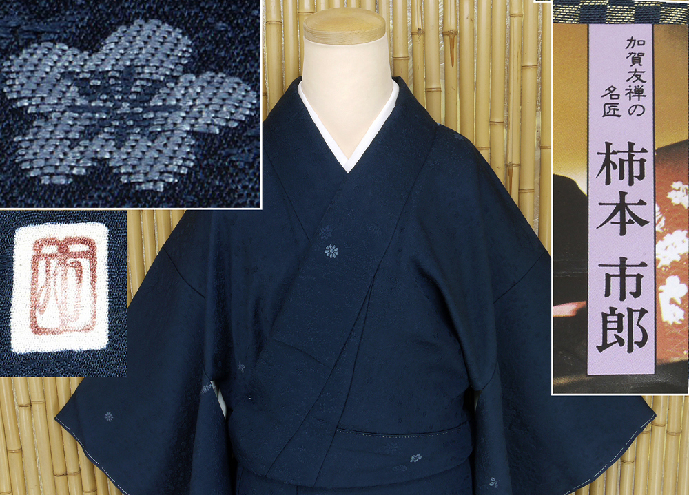> 【京かんざし】969【加賀友禅の名匠 柿本市郎】絹のダイヤモンド「天蚕糸の輝き」色無地 躾糸付未着用身丈162 cm裄丈65 cm★即決送料無料