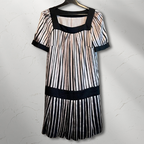 - UNTITLED アンタイトル モノトーンストライプ プリーツスカート 半袖ワンピース サイズ0