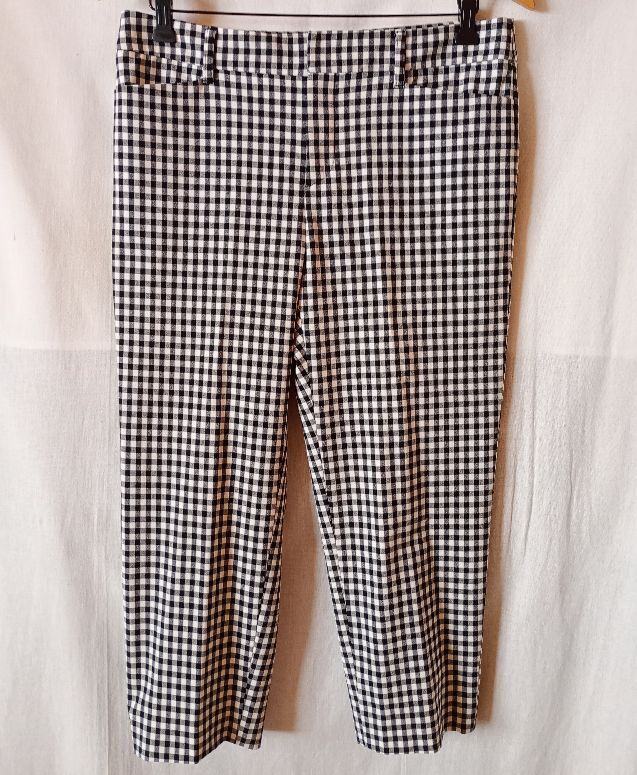 - INDIVI インディヴィ サイズ42 チェック柄クロップドパンツ テーパード ストレッチ 黒×白 春夏