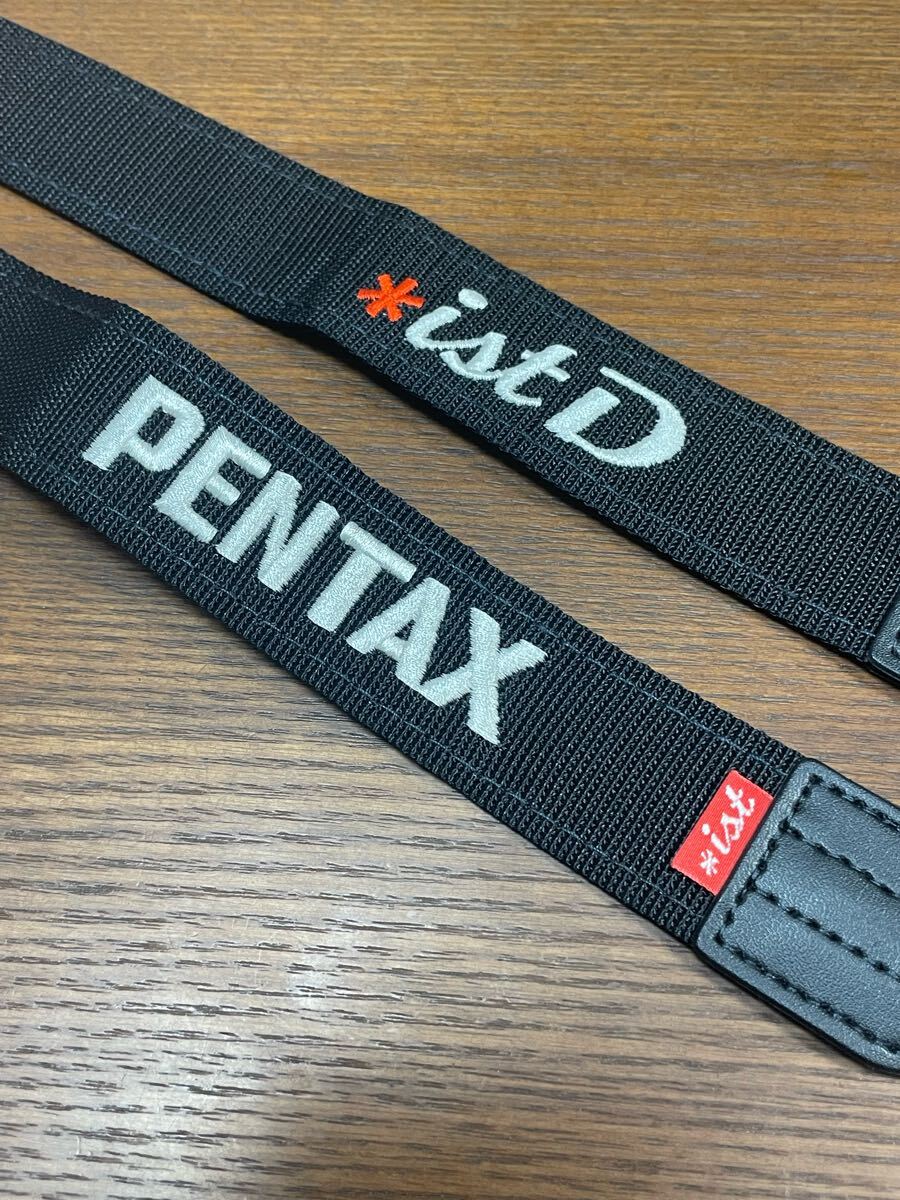 > PENTAX ペンタックス istD ストラップ ブラック 黒 刺繍 ホワイト文字 未使用に近い美品 純正 イストD O-ST10