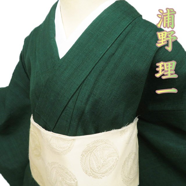 > 特選 浦野理一 紬地 着物 中古 正絹 袷 カジュアル 柚葉色 身丈152cm 裄63cm SA きもの北條 A1176-1