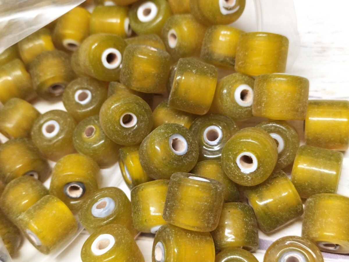 - ヴィンテージ 特大インディアンビーズ とんぼ玉 ナバホ 極太 USA オールドビーズ ホワイトハーツ ディスク 黄色 イエロー サントドミンゴ