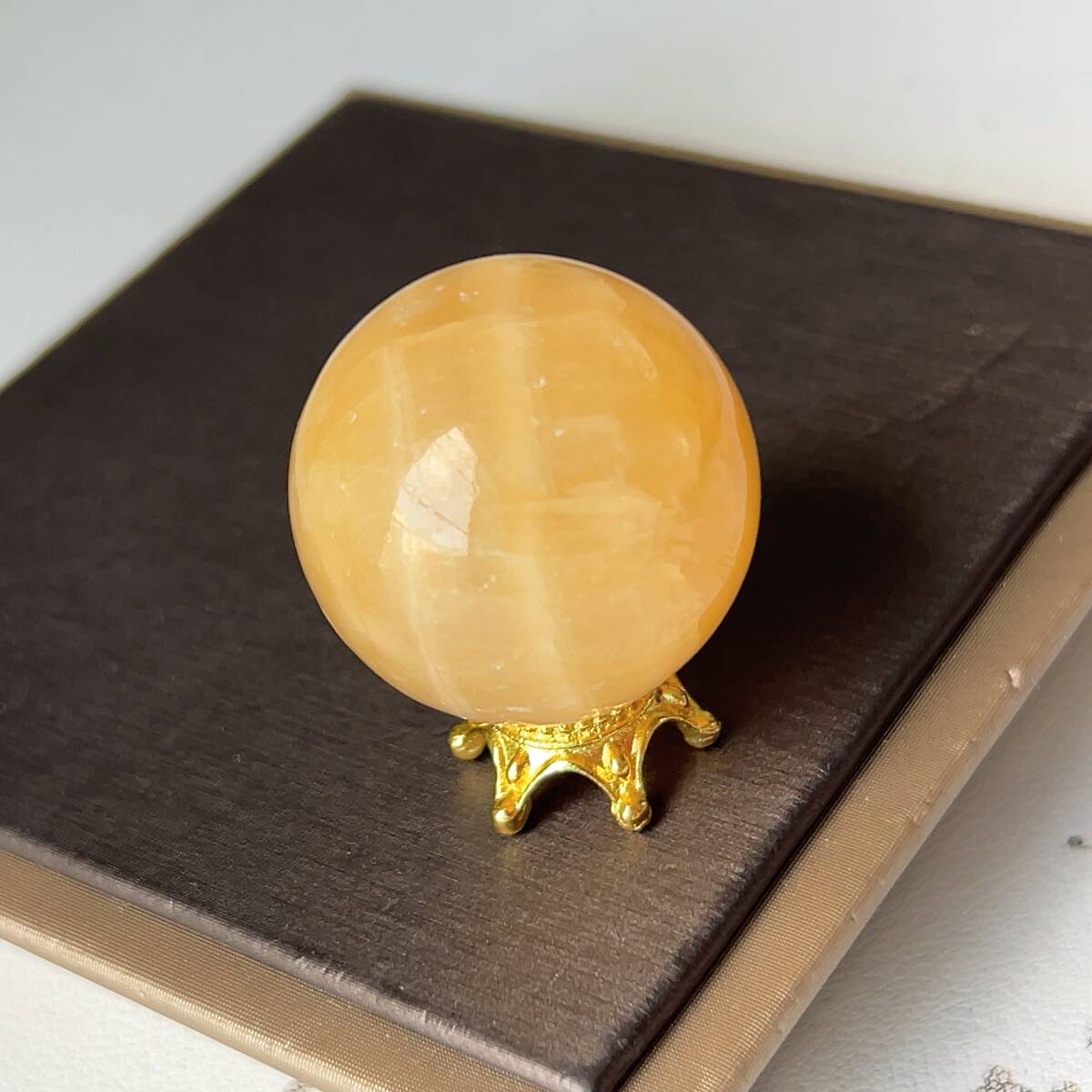 - ◇イエローカルサイト(方解石)◇丸玉◇パワーストーン◇天然石◇置き台付き◇置物◇プレゼントにも 036A4141