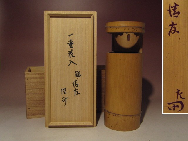 - 表千家 十二代 惺斎造 一重切竹花入【清友】★花押★o485