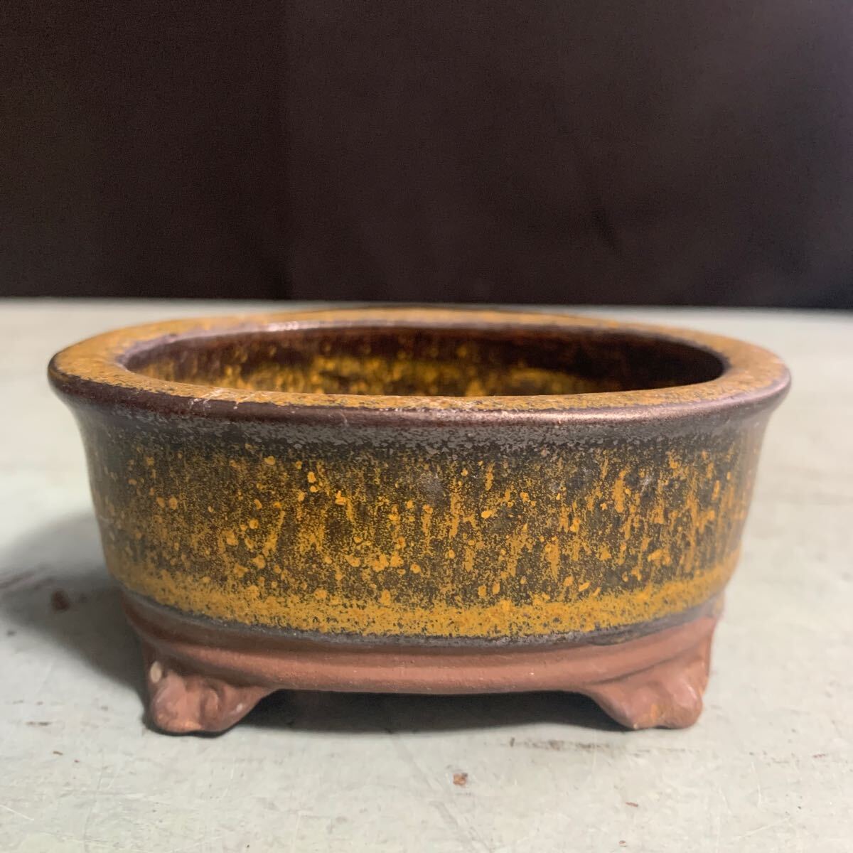 - 植木鉢 盆栽 小さな鉢 中国? 在銘 ミニ盆栽 アンティーク ミニ 盆栽鉢 鉢 ミニチュア 陶器 ミニサイズ 楕円形 (A-1932)