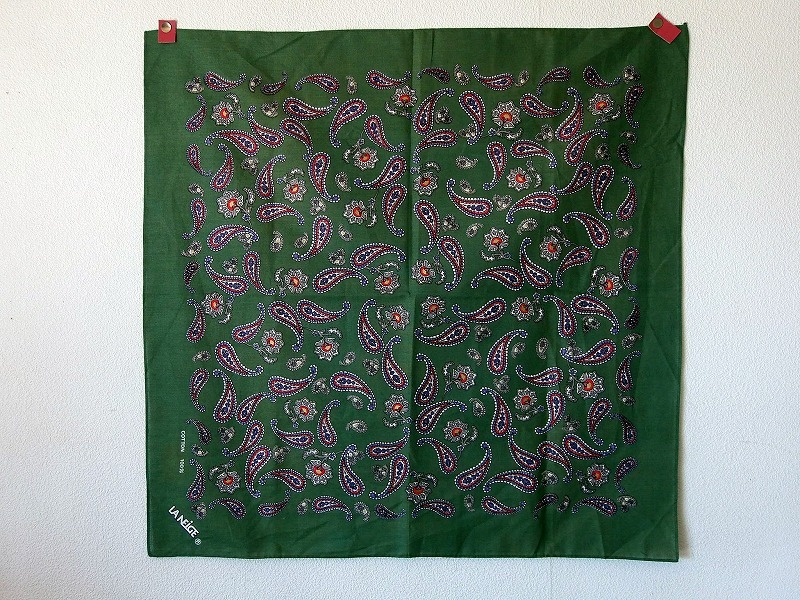 > ◎バンダナ 大判チーフ■LA NEIGE/COTTON100%/ペイズリー柄■590×580㎜/29g■30年ほど前の物?開封済みですが未使用では?■送料¥180~