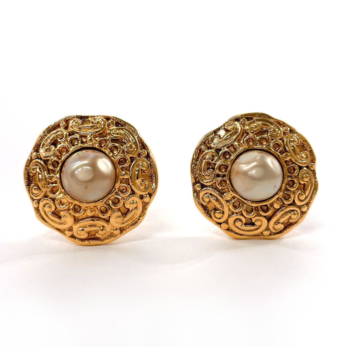 > シャネル CHANEL イヤリング ラウンド ヴィンテージ GP/フェイクパール ゴールド アクセサリー 保存箱付き