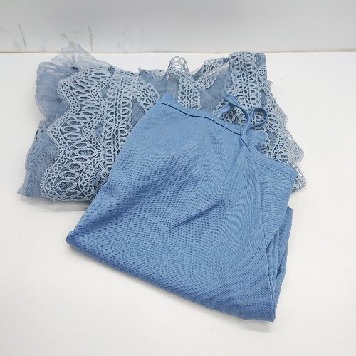 - ◇ ⊂ ◎ meidim レース シアー素材 チュール素材 ロング丈 ワンピース サイズ表記なし ライトブルー系 レディース E