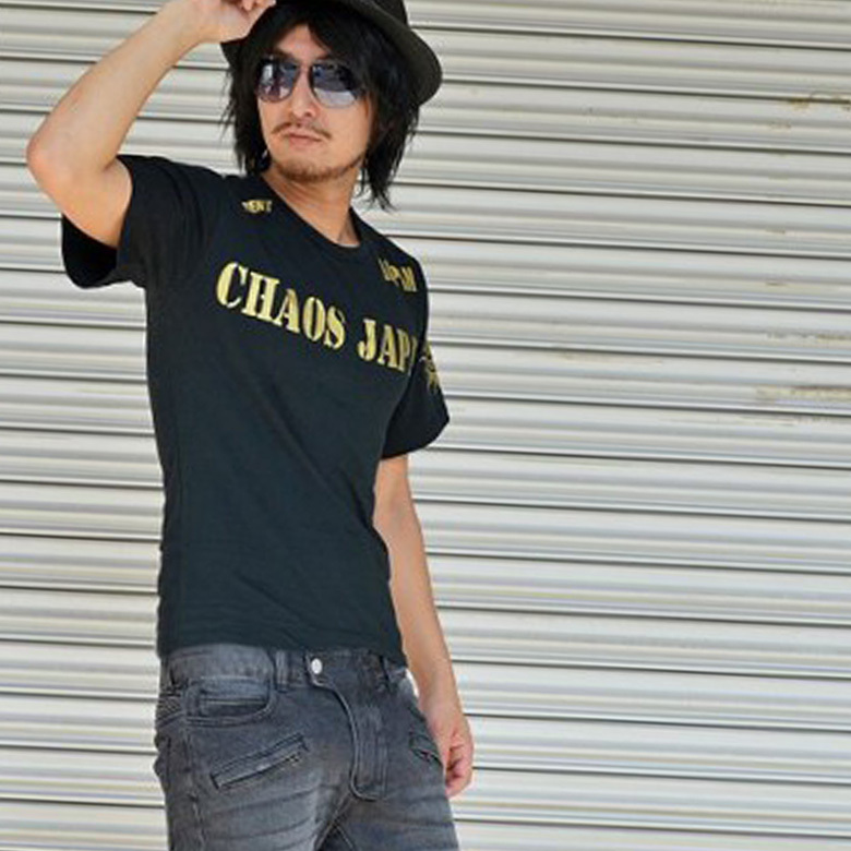 - CHAOS JAPAN ブランドロゴプリ 太陽タトゥープリ Tシャツ オラオラ ch-ry-0010 新品 ブラックゴールド M