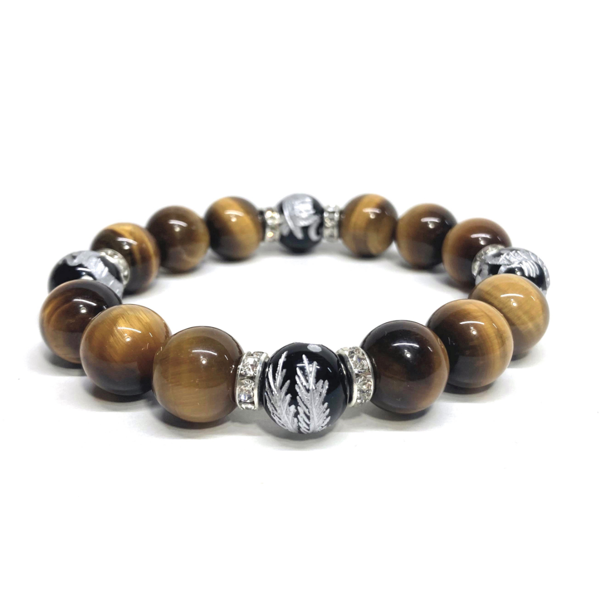 - 四神獣銀彫オニキス×タイガーアイ 12mm パワーストーン ブレスレット天然石 青龍 白虎 玄武 朱雀 運気上昇 開運 金運 お守り 四神相応 S