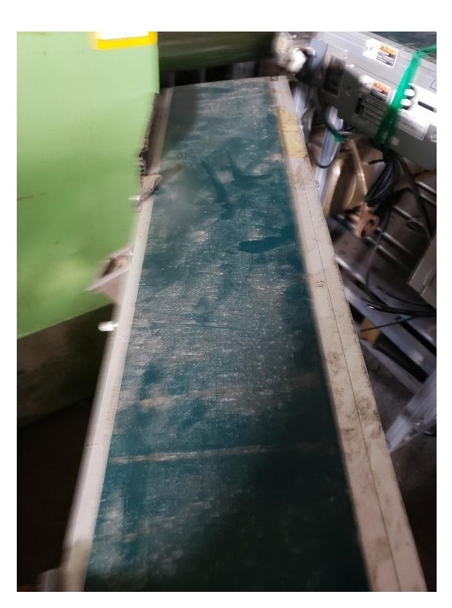 - C3A【棚2581429】ミニアルミコンベアー ベルト巾14全巾18.5cm 1m長さ 正逆 スピードダイヤル付 SBM15H100A型 100V パイプ脚片側付