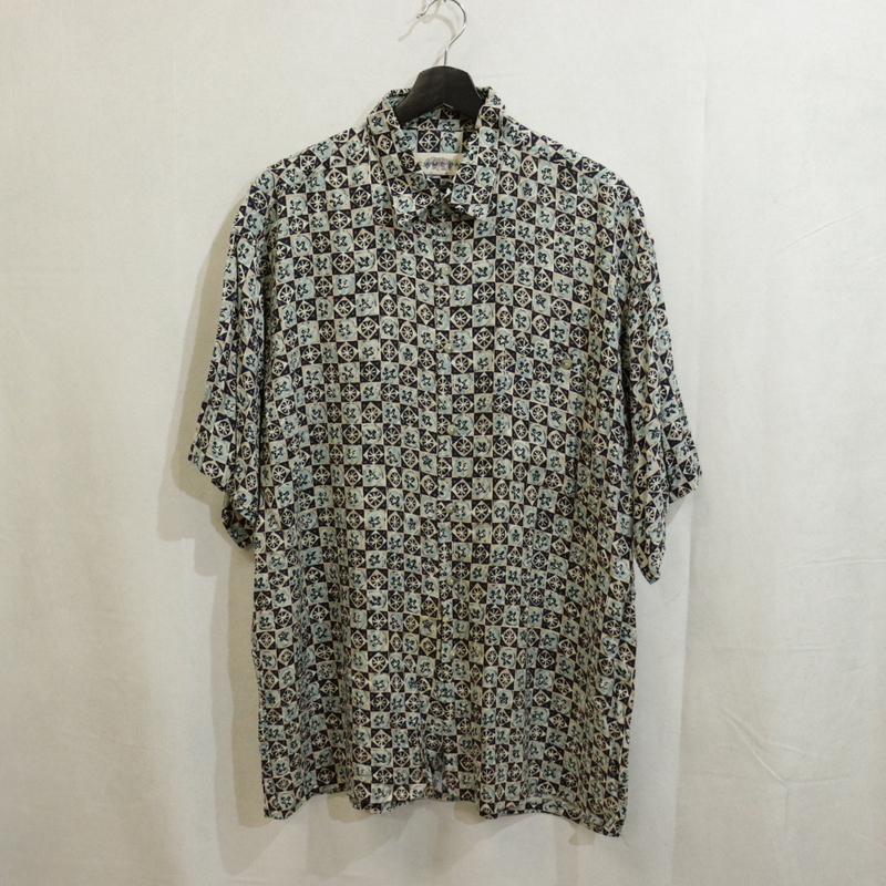 - Q363 90sビンテージ CAMPIA 総柄 半袖 レーヨンシャツ■1990年代製 表記Lサイズ アメカジ マルチカラー サイケ ヒッピー アンティーク 80s