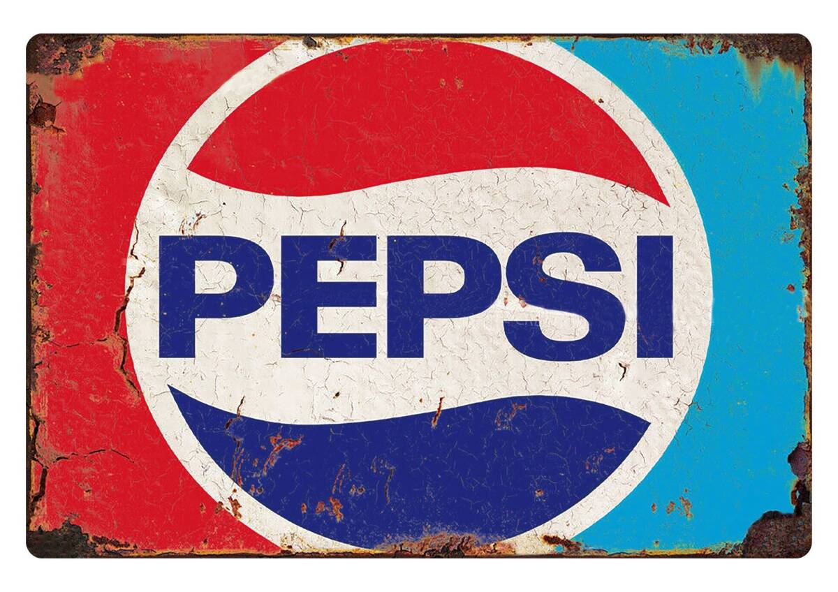 - これはいいサイズ!! 60cm×40cm 看板 ペプシコーラ ヴィンテージ風加工 新品 ガレージ看板