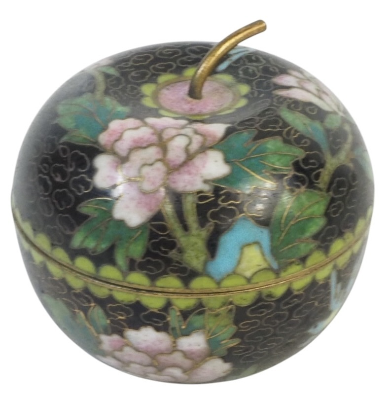 - 中国古玩 中国古美術 七宝焼 景泰藍 林檎型盒子 蓋物 1970年代 TMA704