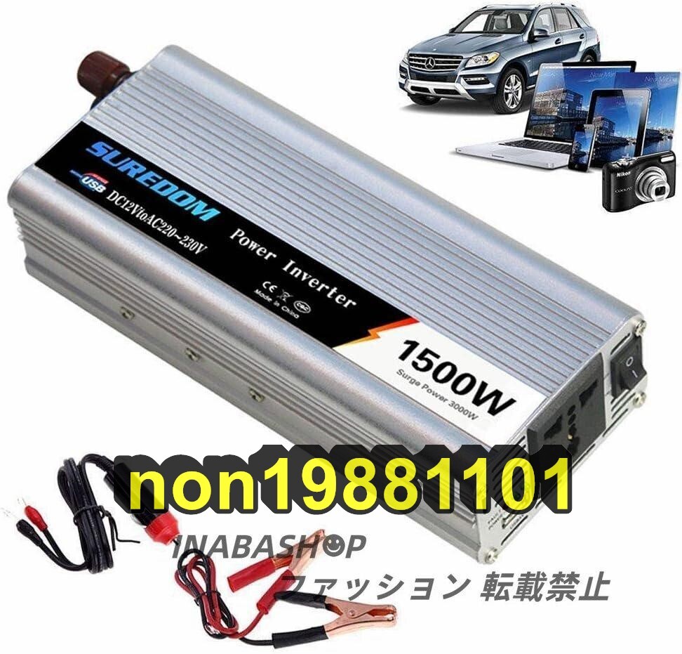 - 1500Wインバーター、DCからAC 12Vから110V、USB充電ポートと電源ソケット付き、自動車用の変更された正弦波電圧コンバーター、12Vから110V