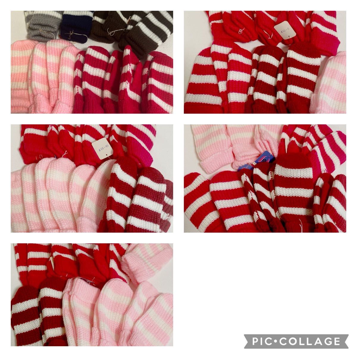 > e730/35〜39 未使用 手袋 50個 まとめて 大量 昭和レトロ ファンシー ポップ アクリル100% ボーダー 赤 ピンク グレー かわいい セット