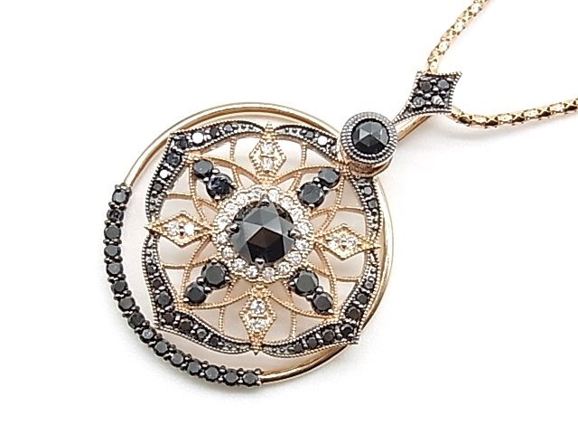 > g20317 K18PG ダイヤ/ブラックダイヤ1.80ct ネックレス USED 美品 10.3g 45cm アジャスター付