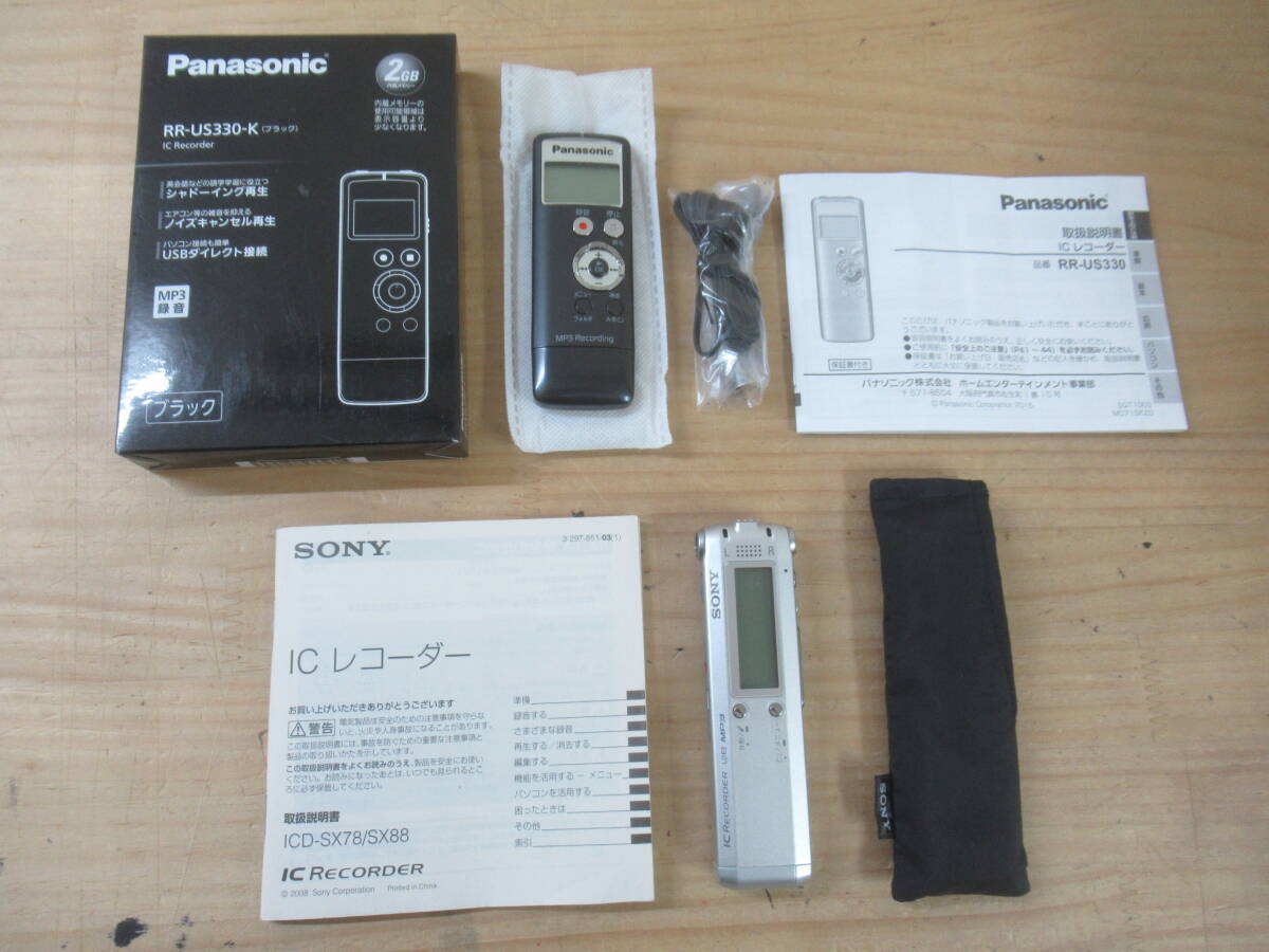 - v36☆ 【 動作確認済み ICレコーダー まとめ 2台 】 パナソニック 2GB ブラック RR-US330-K SONY ステレオ 1GB ICD-SX78 セット 250417