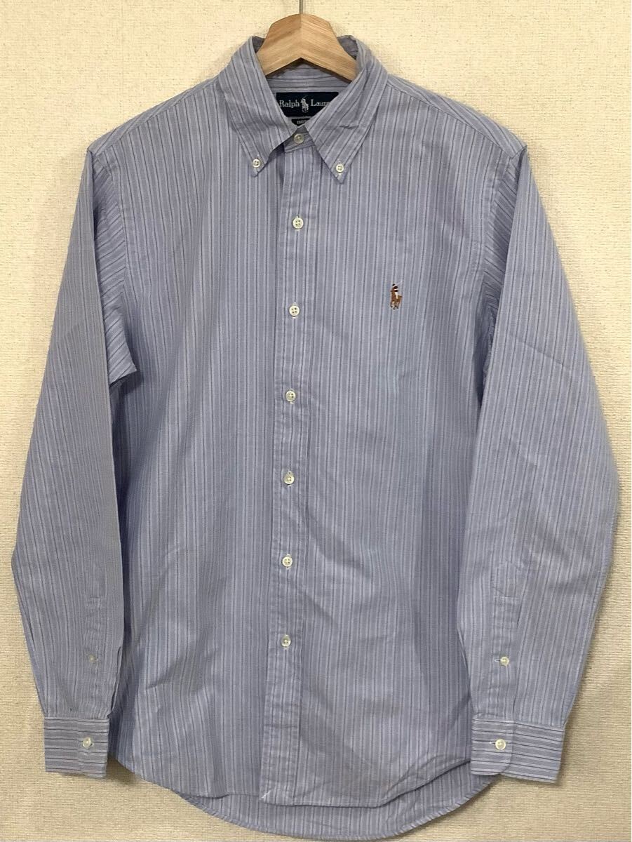 > RALPH LAUREN ラルフローレン カスタムフィット ストライプ柄 ボタンダウンシャツ ブルー セレクト メンズ 古着 S