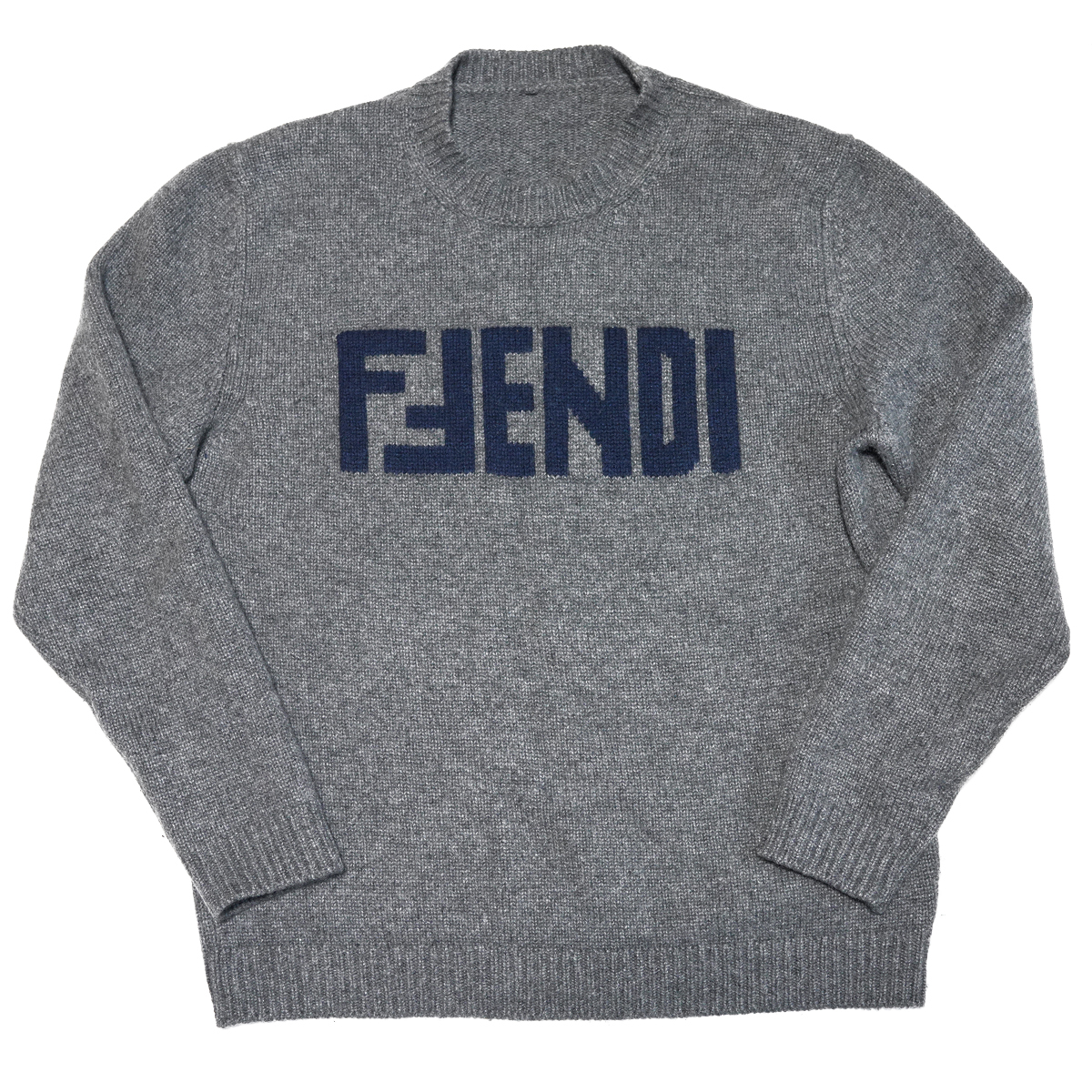 - フェンディ カシミア 100% ニット セーター ロゴ FENDI グレー 46 12cpf-18-138 FZZ373 A65B