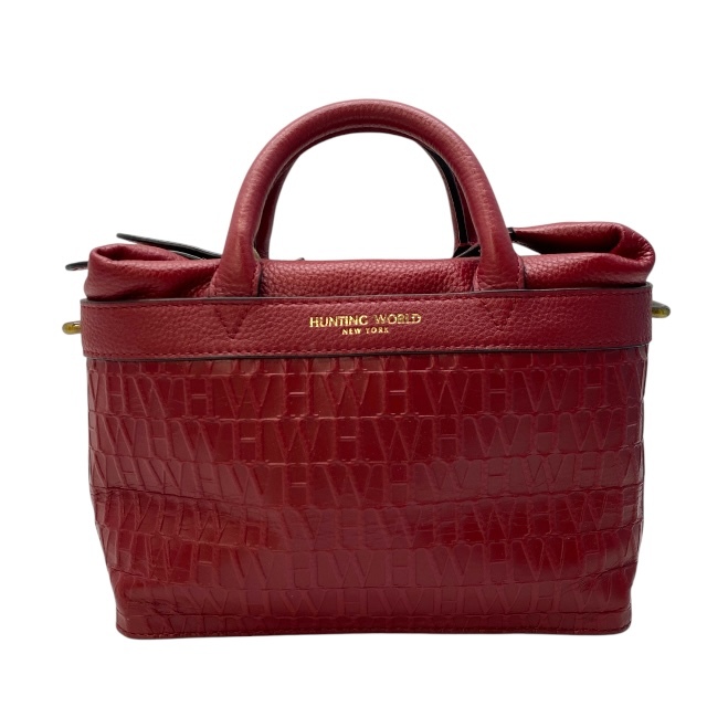 - HUNTING WORLD ハンティングワールド 2way ハンドバッグ ショルダーバッグ 手持ち鞄 肩掛け 斜め掛け ロゴ レザー レッド